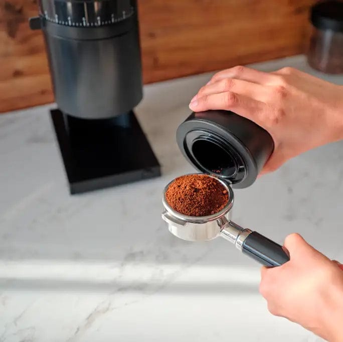 Opus’s direct drop-down design from load bin to catch radically reduces grind retention, while the anti-static technology and spouted catch eradicate mess, all in a beautiful and compact form that’s a countertop centerpiece.