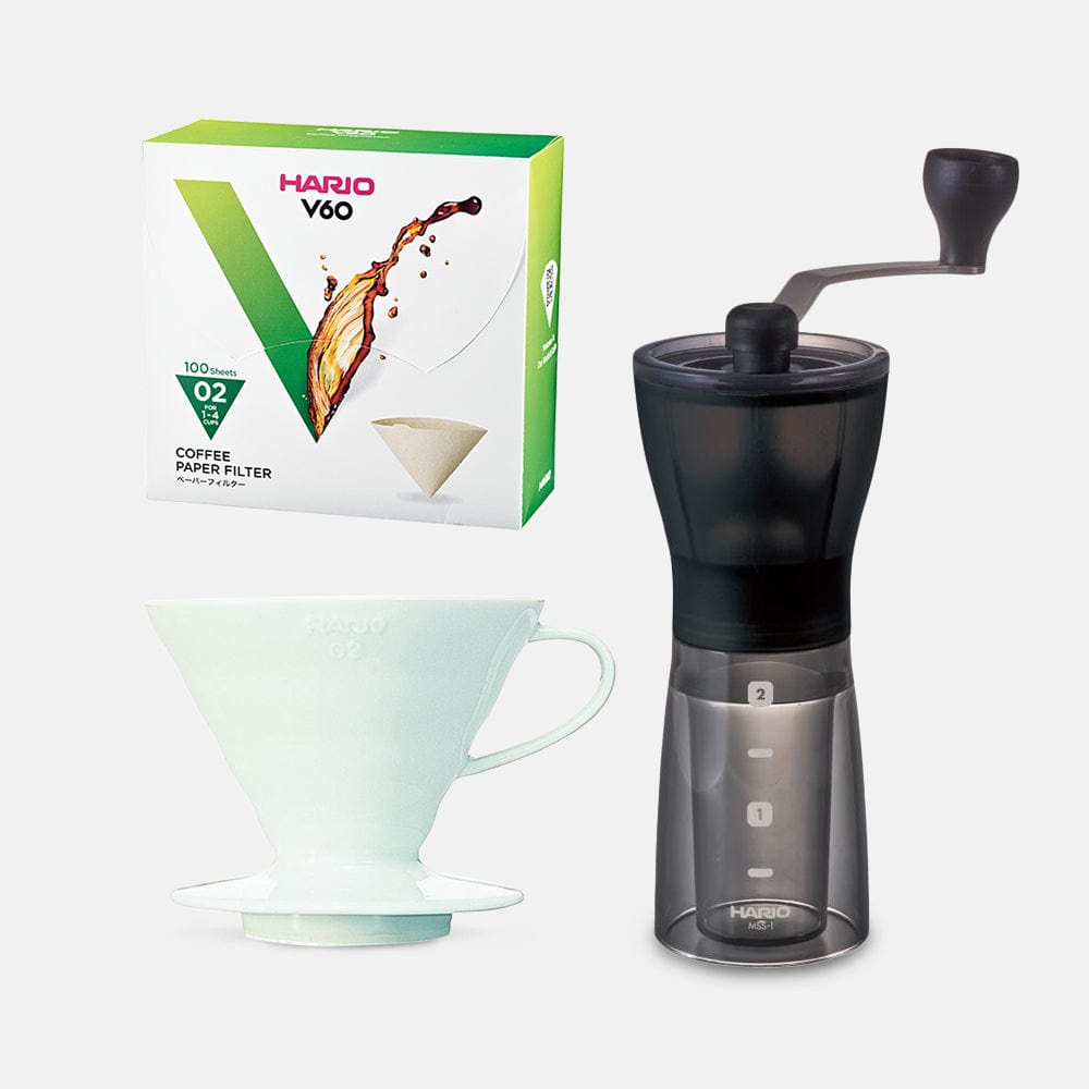 Hario Mini Mill Plus V60 Ceramic Starter Kit Size 02 (White)