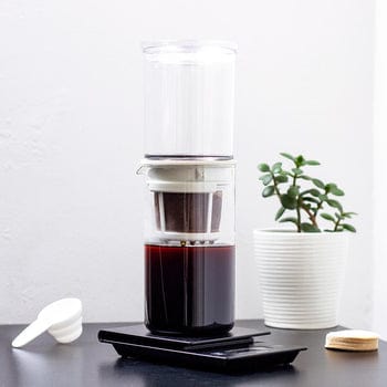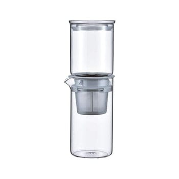 Simply put in coffee grounds and pour water into the upper bowl for fresh coffee in 45 min to 1 hour. The slim design is ideal for storing in the refrigerator.